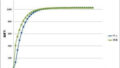 これを見ると、通常の大気炉の加熱速度であれば、加熱途中には中心と表面の温度差があっても、目的温度に近づくと、ほとんど内外の温度差はなくなってくることがわかります。(このシミュレーションは熱伝導を含めて計算しているのですが、伝導速度は大きいので、内部の昇温は意外に早いということですね)